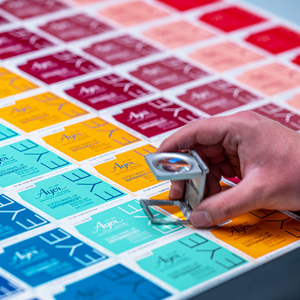 Mit unserem Qualitätsmanagement überwachen und verbessern wir kontinuierlich unsere Prozesse. Wo immer wir eine Chance zur Weiterentwicklung entdecken, optimieren wir die Qualität unserer Arbeit. Beispielsweise führten wir eine Reihe an Maßnahmen ein, um Farbschwankungen auf ein Minimum zu reduzieren. Über viele Jahre haben wir eine Menge Know-How in die Entwicklung unseres Farblabors investiert. Mit einer automatisierten Inline-Farbmessung und Farbregelung können wir so unseren Kunden auch nach Jahren identische Farbwerte garantieren.